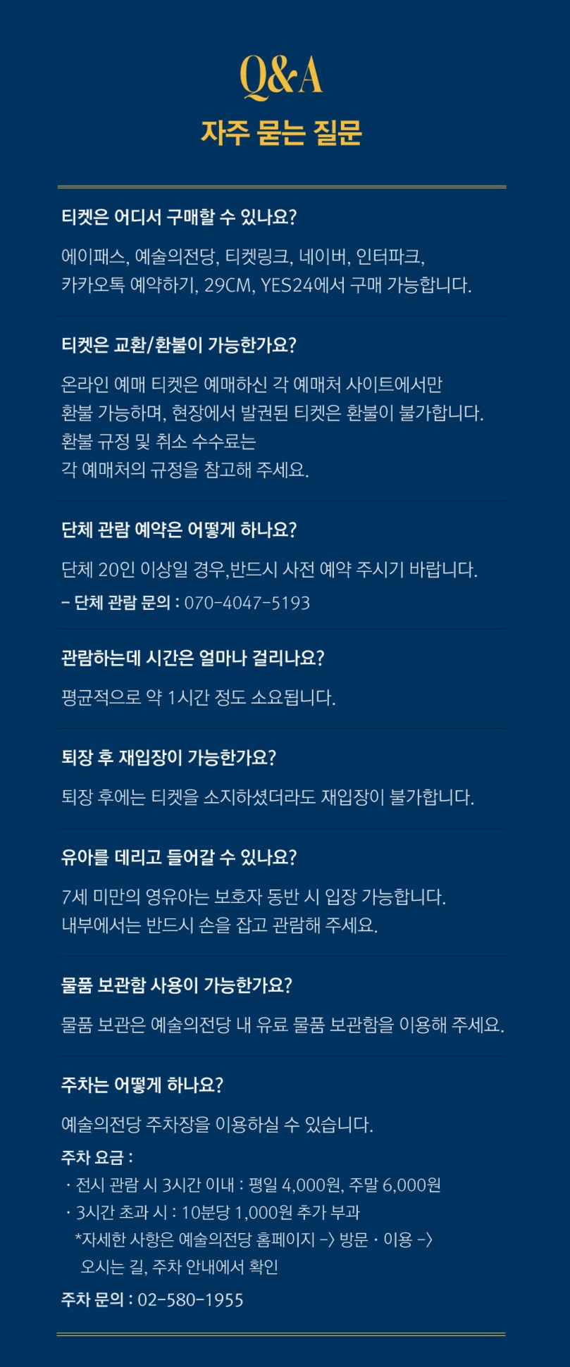 - 전시장소 : 예술의전당 한가람미술관 1F